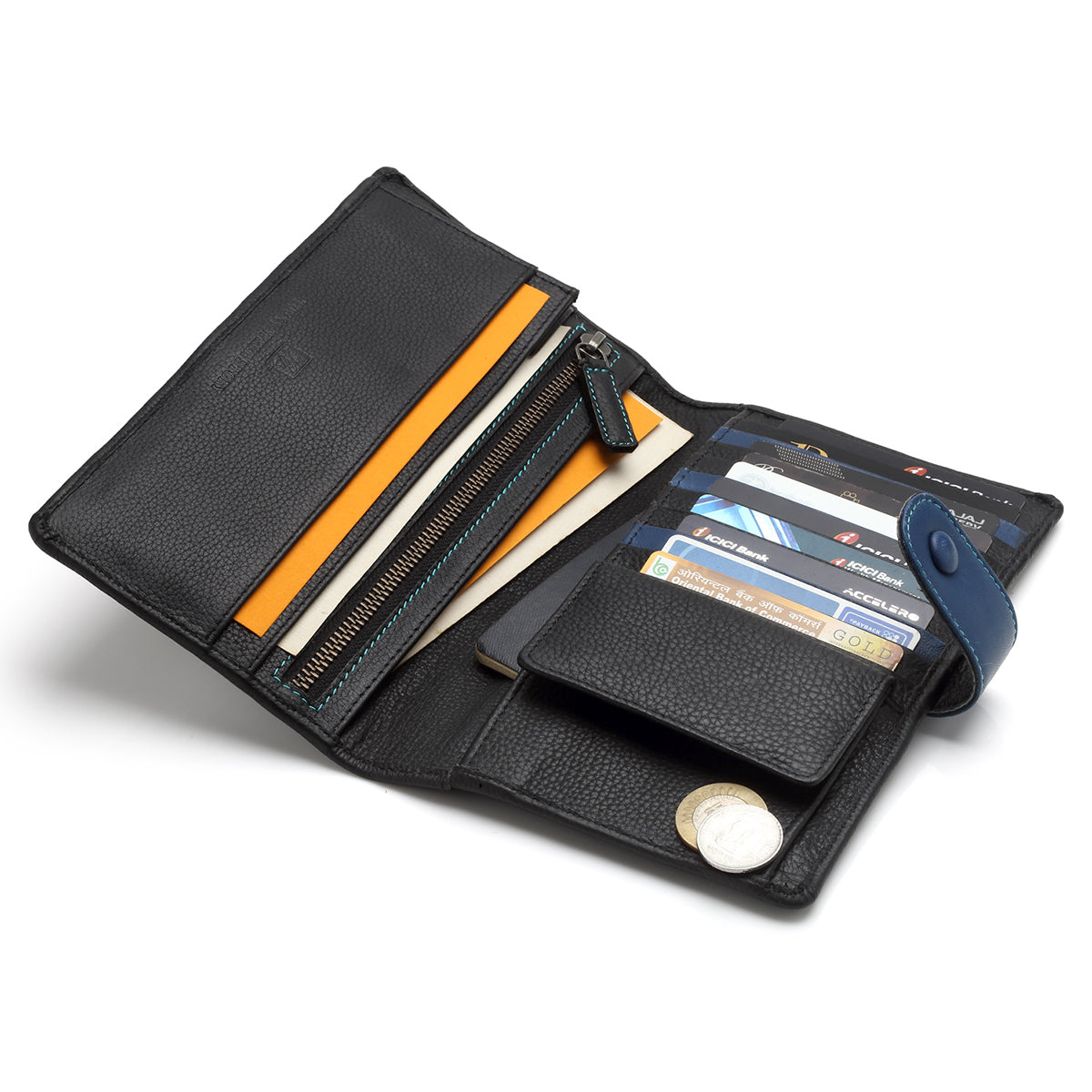 Classic bi-fold travel wallet to carry your essential travel documents and needs. A chic yarn-dyed striped lining enhances its looks and durability. Additional 4 slots to carry money bills make it a perfect travel accessory and a luggage tag to go along.