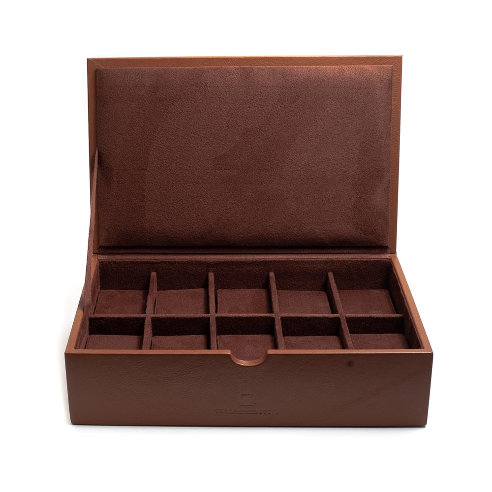 This leather watch box is perfect for storing your precious jewelry as well as your cherished watches. It comes with a clean finish and suede interior for a luxury finish and a number of compartments to keep your watch. A stunning watch box crafted beautifully for professionals and perfect for home use.