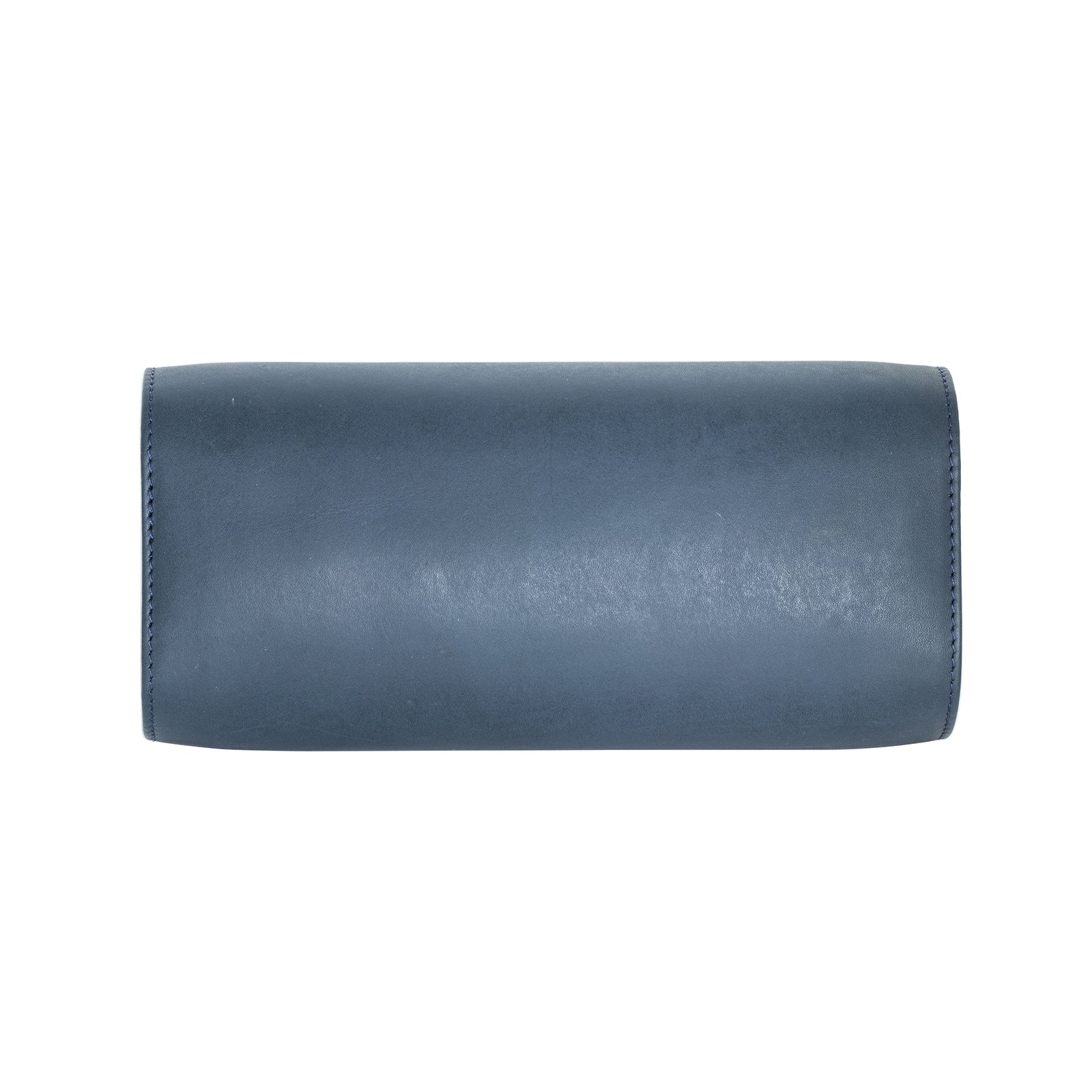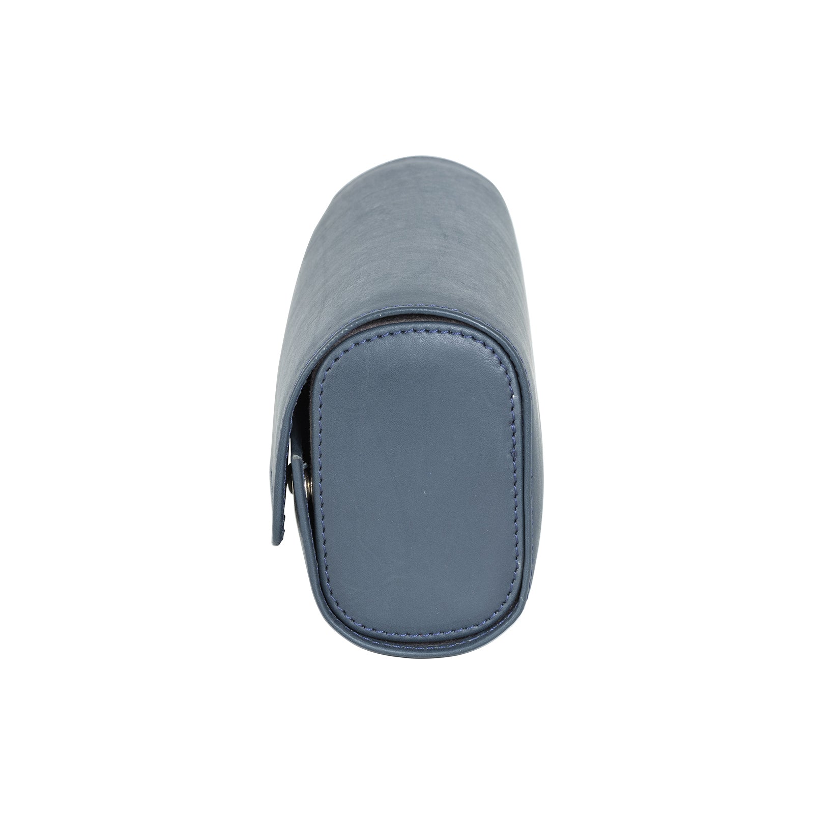 A nevy blue leather watch roll box with microfibre interior, displaying watches through its open side.
